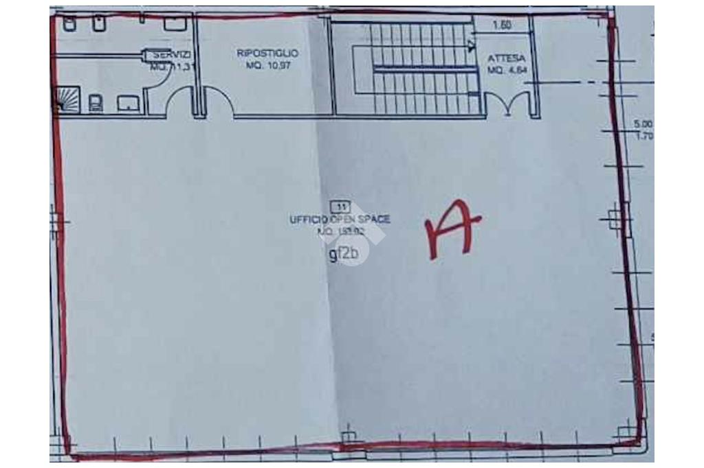 L'immobile è così distribuito : tramite una rampa di scale si accede al primo piano composto da ufficio open space di circa 150 mq, ripostiglio, saletta d'attesa e due bagni.